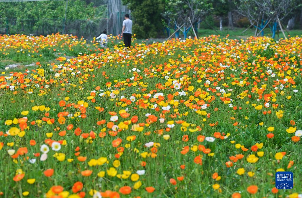4月11日,游人在織里鎮廟兜村的花海游覽。