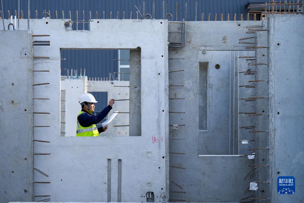 4月11日,河北省玉田縣一家裝配式建筑制造企業的工人在查驗產品質量。