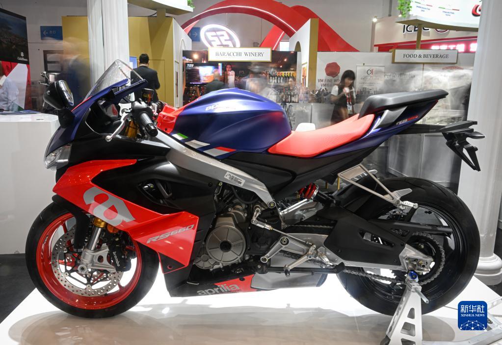 4月11日在消博會意大利企業館內拍攝的摩托車。
