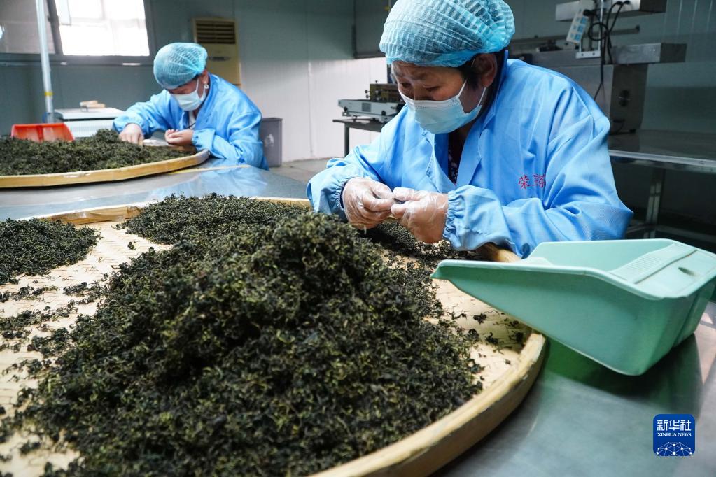 4月11日,在山東省單縣黃崗鎮的一家蒲公英加工企業,工作人員在篩選蒲公英茶。