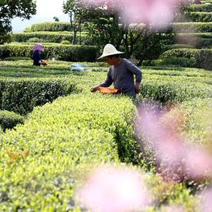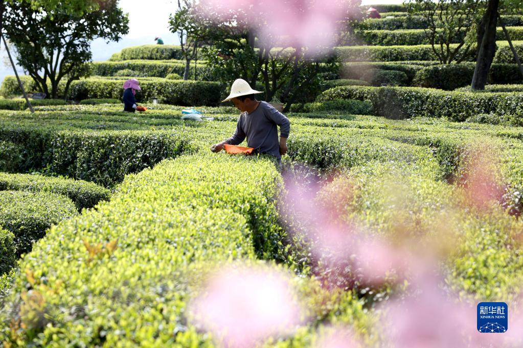 4月11日,村民在福建福鼎市佳陽畬族鄉茶園采茶。