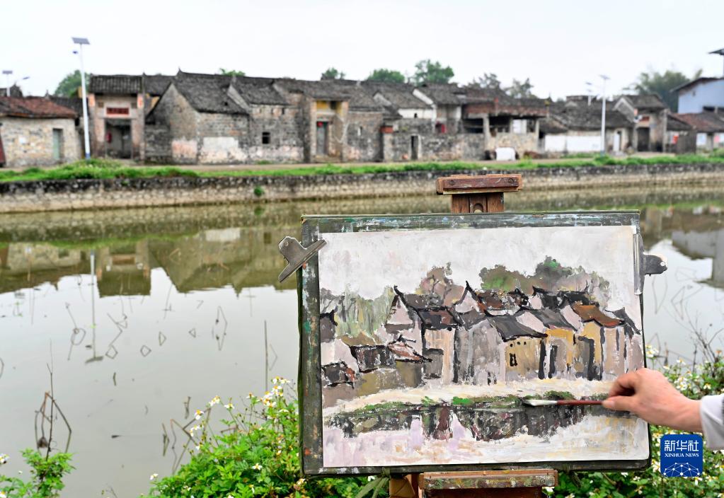 4月10日,繪畫愛好者在柳城縣古砦仫佬族鄉大戶村灘頭屯寫生。