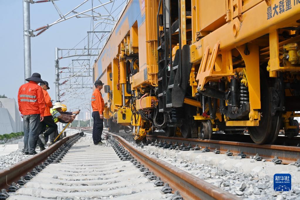 當日,在福廈高鐵莆田站新建站場,作業人員與大型養路機械共同配合,對最后900米有砟軌道精細調整結束,標志著福廈高鐵全線軌道精調順利完成,為下一步全線聯調聯試工作打下堅實基礎。