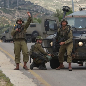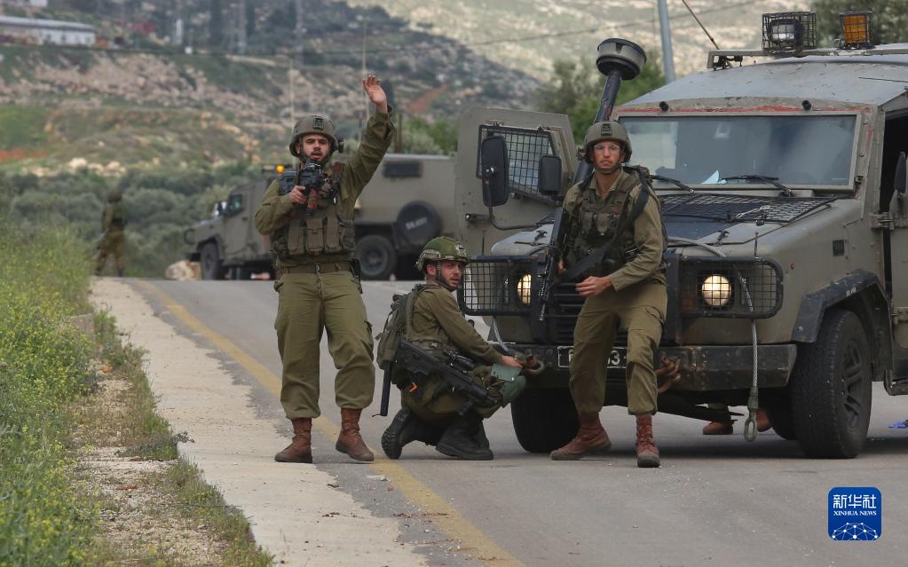 這是4月11日在納布盧斯交火現場附近拍攝的以色列士兵。