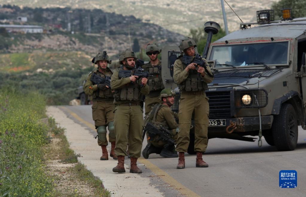 這是4月11日在納布盧斯交火現場附近拍攝的以色列士兵。