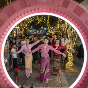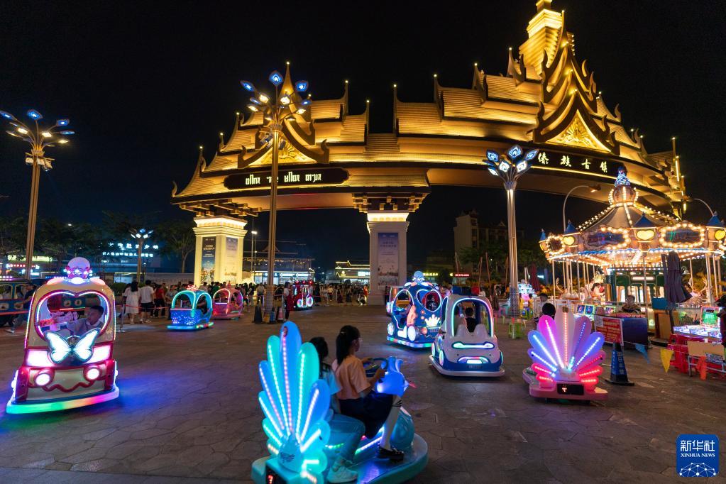 華燈初上,位于云南省德宏傣族景頗族自治州芒市的傣族古鎮逐漸熱鬧起來。作為2022年國家文化和旅游部確定的第二批國家級夜間文化和旅游消費集聚區之一,這里極具特色的少數民族建筑、服飾、舞蹈、美食吸引著人們流連忘返。