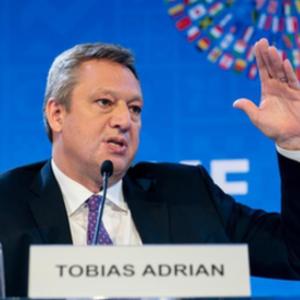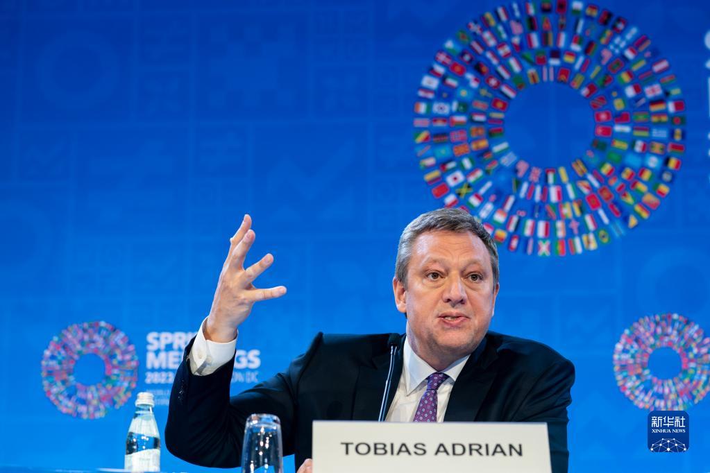 4月11日,在美國華盛頓,IMF貨幣與資本市場部主任托比亞斯·阿德里安出席記者會。