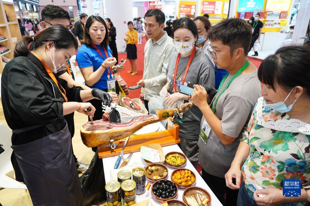 在??谂e行的第三屆中國國際消費品博覽會上,來自全球的優質農產品和特色美食云集。觀眾在消博會上品嘗美食,享受舌尖上的盛宴。