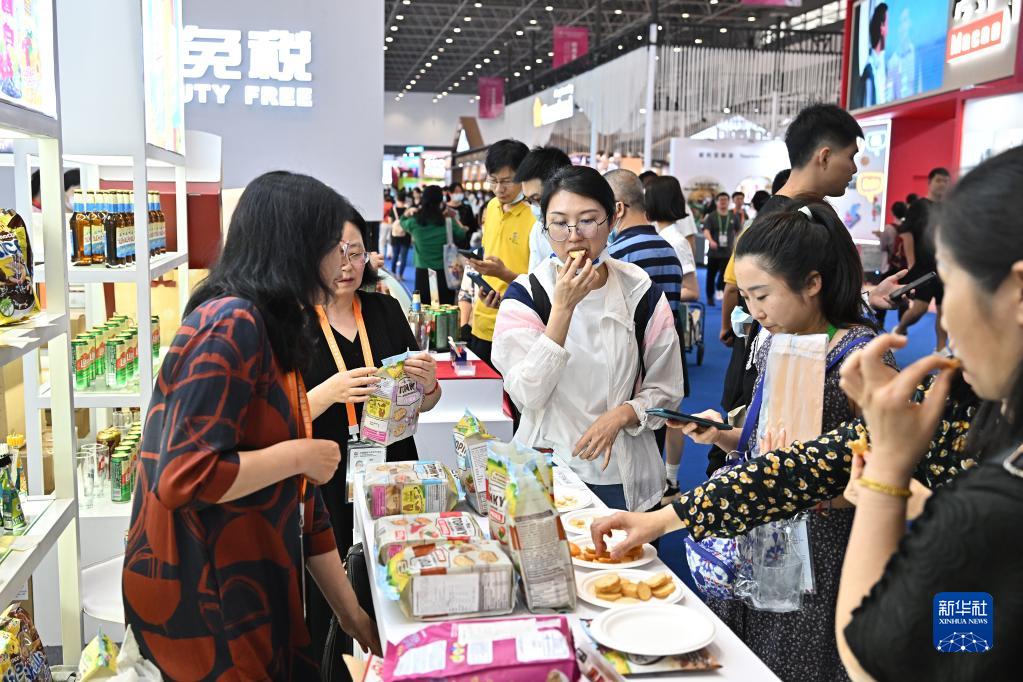 在??谂e行的第三屆中國國際消費品博覽會上,來自全球的優質農產品和特色美食云集。觀眾在消博會上品嘗美食,享受舌尖上的盛宴。