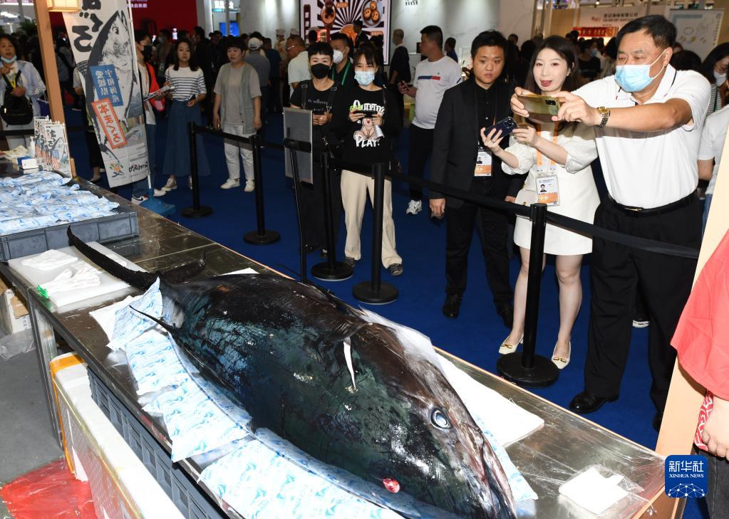 4月12日,觀眾在消博會拍攝展出的金槍魚。