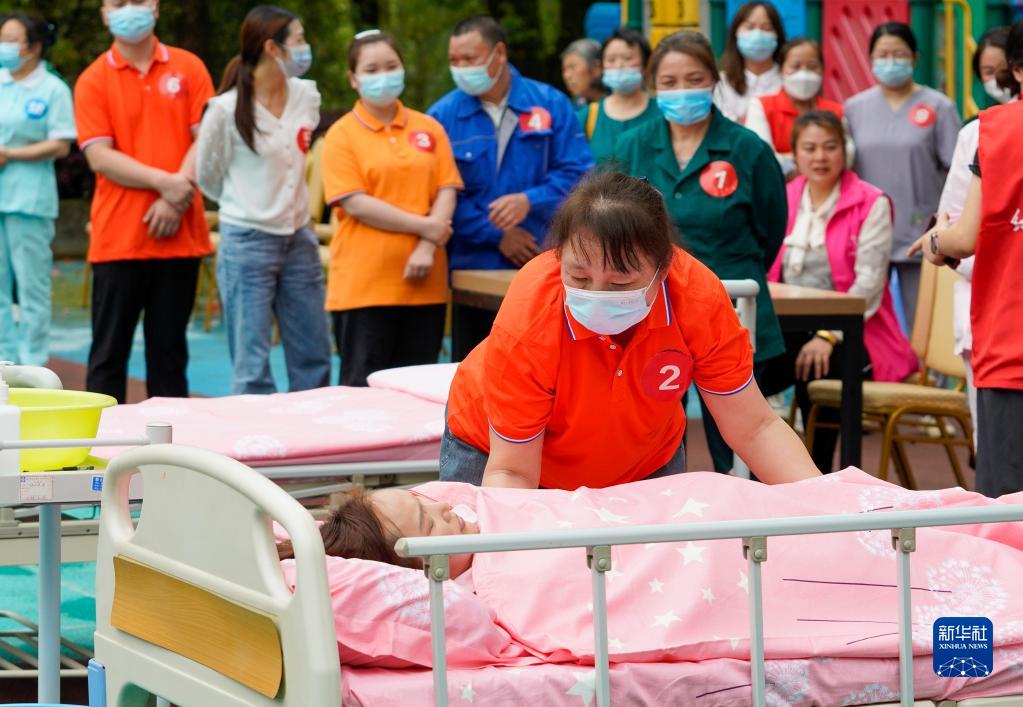 當日,重慶市沙坪壩區“紅巖·銀齡”養老護理員大賽暨“助餐、助浴、助潔”服務技能大賽決賽正式開賽,來自當地數十家養老機構和企業的80多名養老護理員就養老日常護理、養老保潔、助力老年人沐浴等多個養老服務行業的技能項目展開角逐。