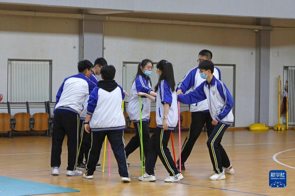 4月12日,大連市第十一中學學生在體育館上心理團體輔導課。