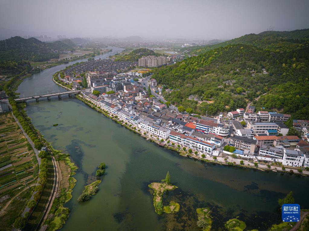 這是4月12日拍攝的諸暨市暨南街道街亭村開化江兩岸景色(無人機照片)。