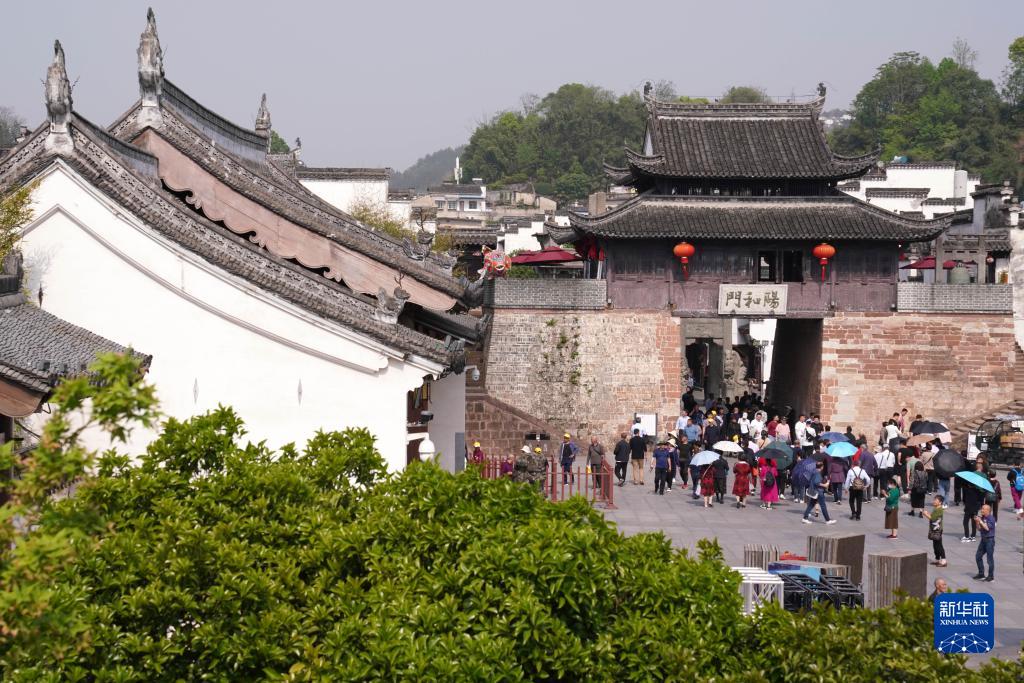 4月12日,游客游覽安徽省黃山市歙縣的徽州古城景區。