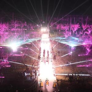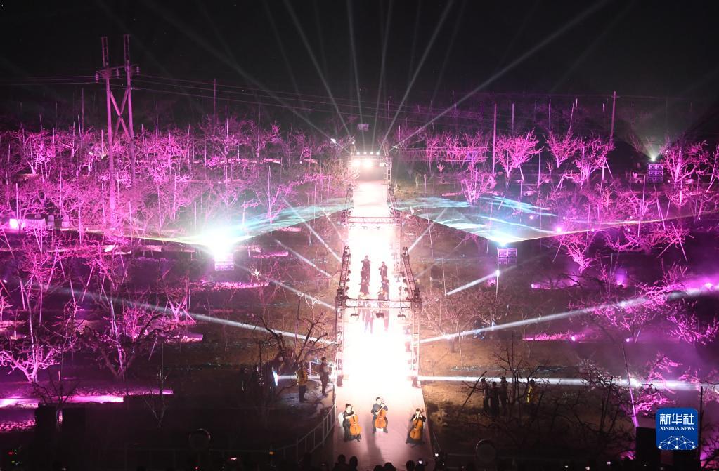 4月12日在第二十五屆北京平谷國際桃花節活動現場拍攝的燈光秀。
