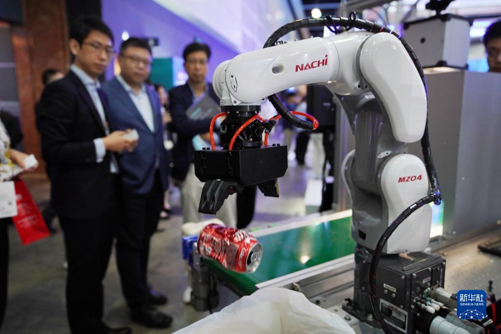 4月12日在首屆香港國際創科展上拍攝的進行垃圾分類的機器臂。