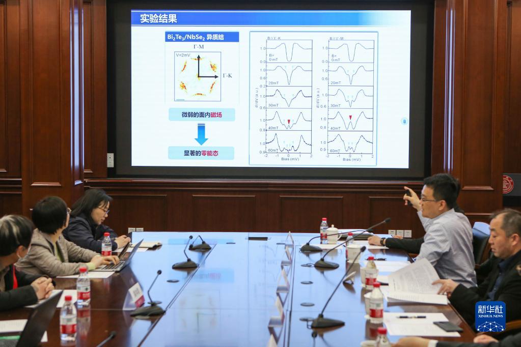 4月12日,上海交通大學物理與天文學院教授鄭浩(右排中)介紹“實驗證實超導態‘分段費米面’”成果。