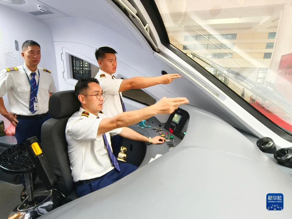 4月13日,在中老鐵路老撾萬象站,中老雙方司機在首列萬象至昆明的中老鐵路國際旅客列車上為發車做準備。