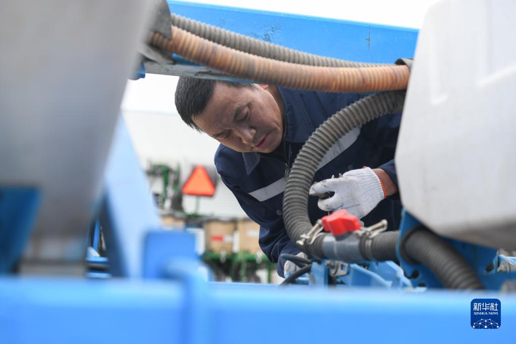 4月12日,在建設農場有限公司第四管理區農機中心,許志國在復檢用于播種的農機具。