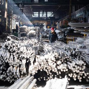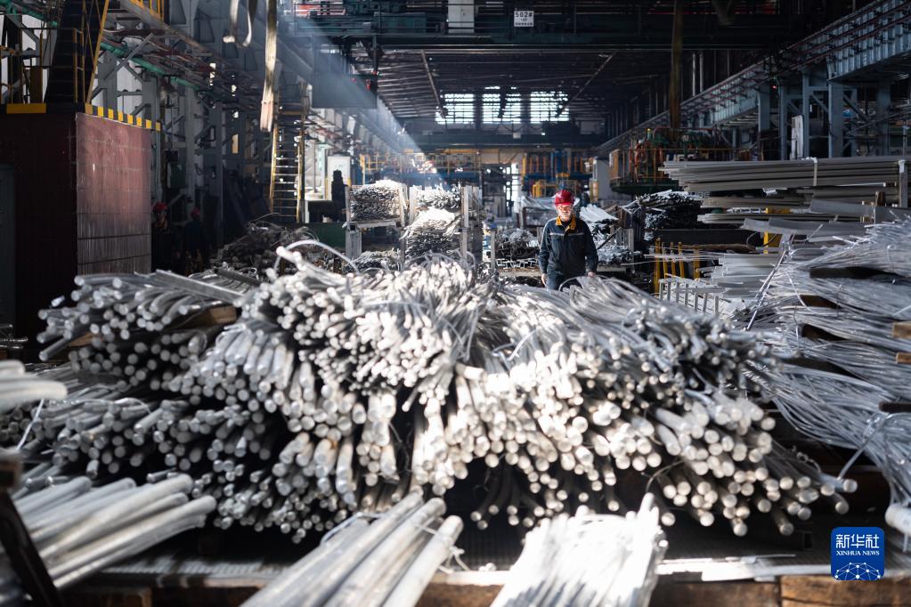 4月13日,在中鋁集團東北輕合金有限責任公司,工人在生產廠區作業。