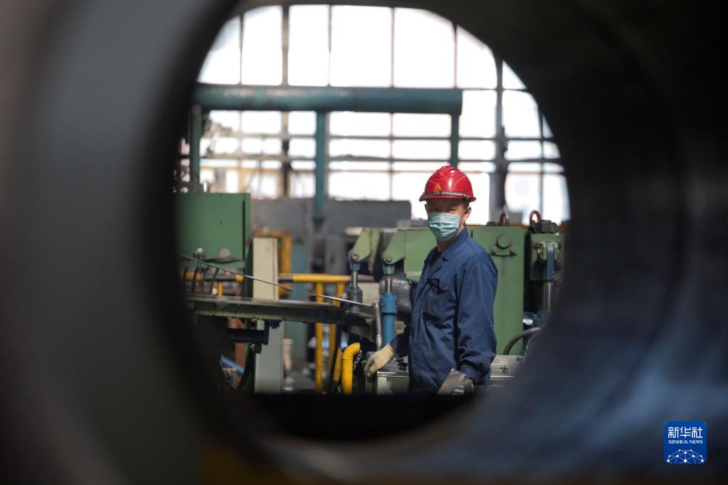4月13日,在中鋁集團東北輕合金有限責任公司,工人在生產廠區作業。