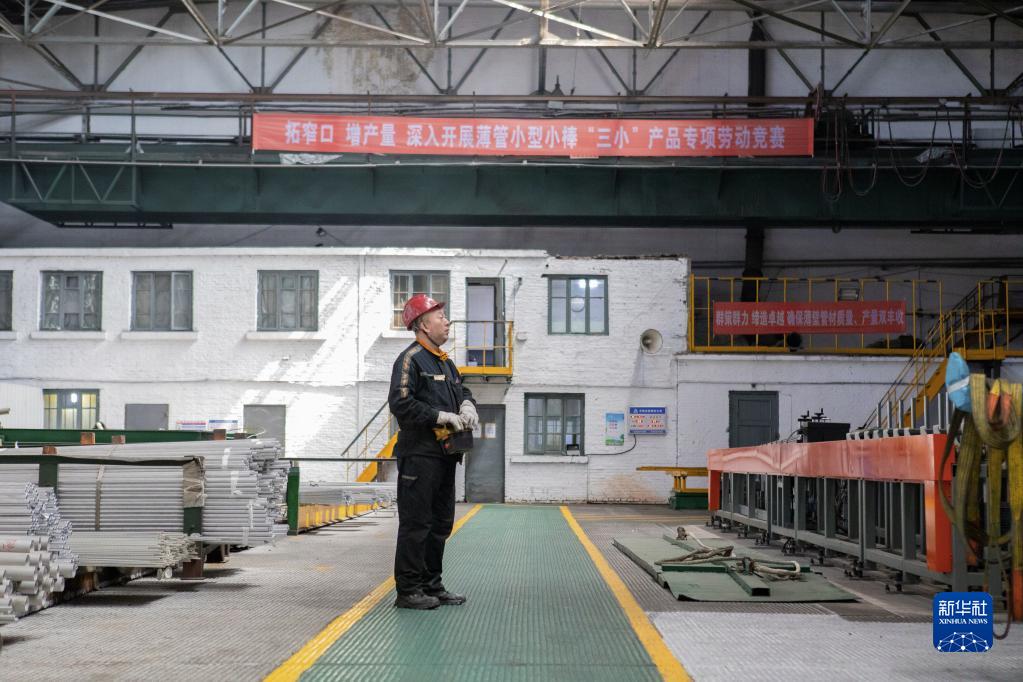 4月13日,在中鋁集團東北輕合金有限責任公司,工人在生產廠區作業。