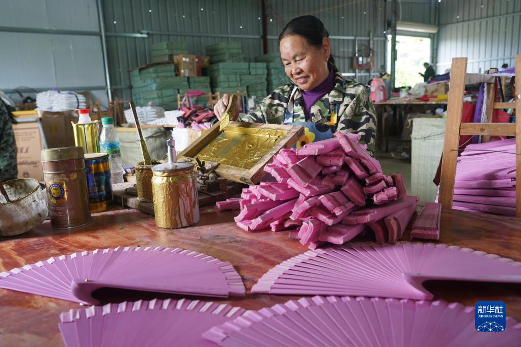 近年來,江西省撫州市廣昌縣甘竹鎮羅家村依托傳承多年的香扇制作技藝,大力發展工藝扇產業,產品遠銷西班牙、日本及東南亞等地,年產值超5000萬元,帶動周邊村民2000多人實現“家門口”就業。
