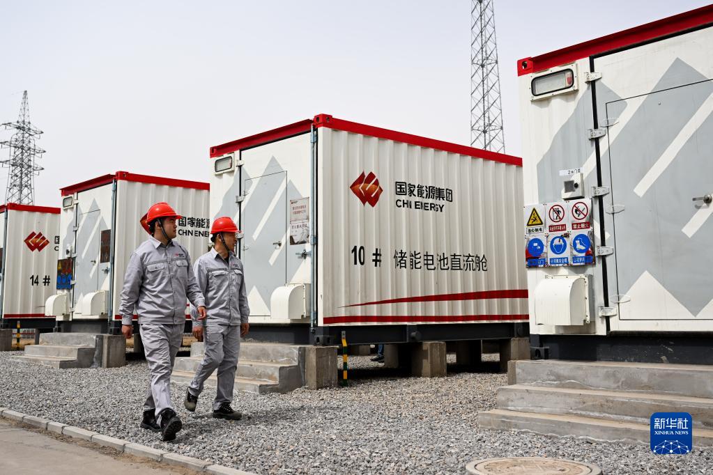 4月13日,在國家能源集團烏海能源公司黃白茨光儲電站,工人在巡檢儲能裝置。
