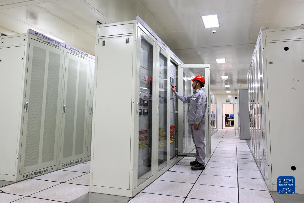 4月13日,在國家能源集團烏海能源公司黃白茨光儲電站,工人在巡檢設備。
