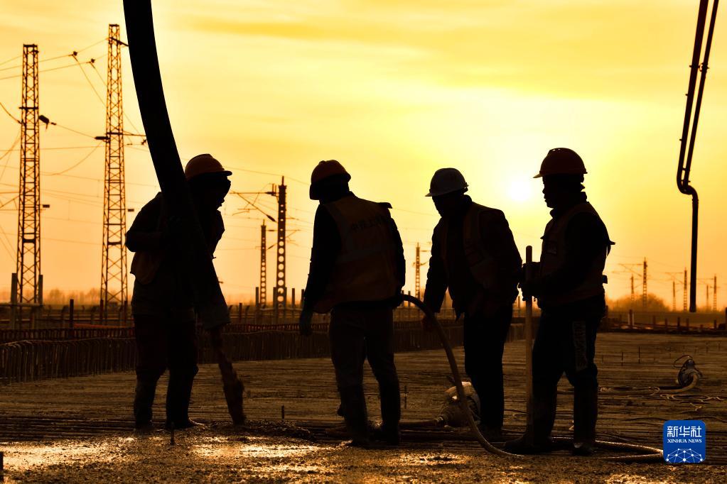 4月13日,工人在包銀高鐵包頭段首座有砟軌道鋼筋混凝土剛構連續梁建設現場作業。