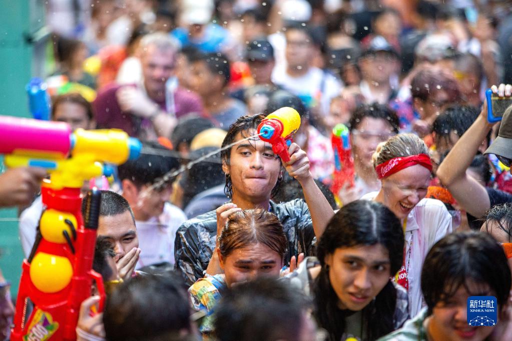 4月13日,人們在泰國曼谷慶祝潑水節。