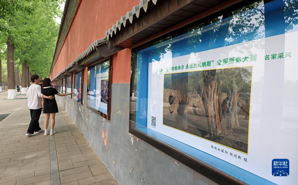 4月13日,觀眾在北京北海公園觀看蘇克杯“世界的帕米爾 永遠的瑪納斯”全國攝影大展。