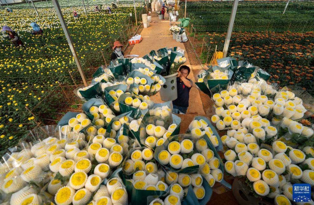 中國云南有著亞洲最大的鮮切花交易市場,一年可以賣出110億枝鮮切花。春季云南各地的鮮花基地內大量鮮花進入盛花期,各類鮮花經過采摘、修枝、包裝、入庫、裝箱、運輸等過程,通過冷鏈物流,陸續進入日本東京、大阪等城市的鮮花門店,成為當地人生活中的美麗點綴。