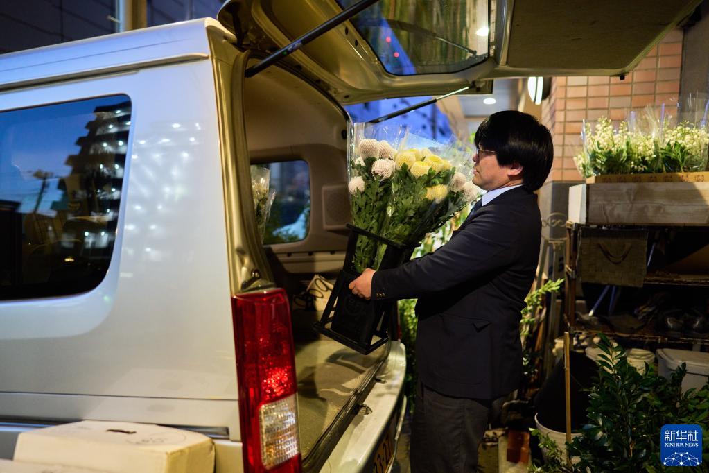 在日本千葉縣千葉市,小西武將從中國云南進口的鮮花送到訂貨的花店(4月3日攝)。