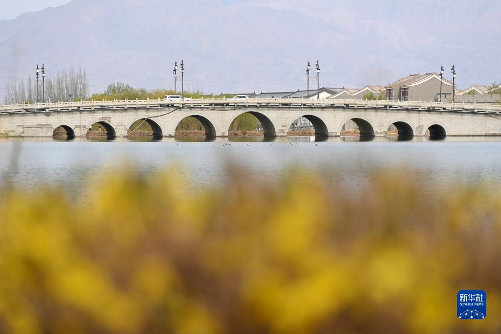 這是4月13日拍攝的張掖市蘆水灣生態景區內春日景色。