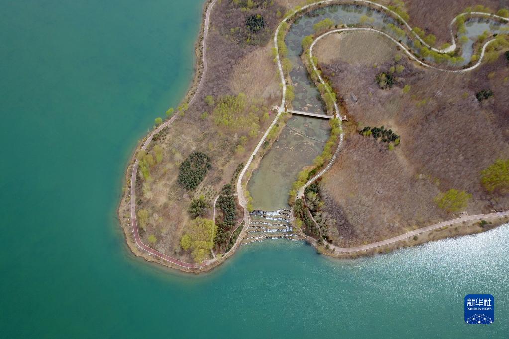 這是4月13日拍攝的張掖市蘆水灣生態景區內春日景色(無人機照片)。