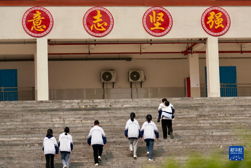 4月13日,朱金祥(右一)背著鐘華強返回教室。
