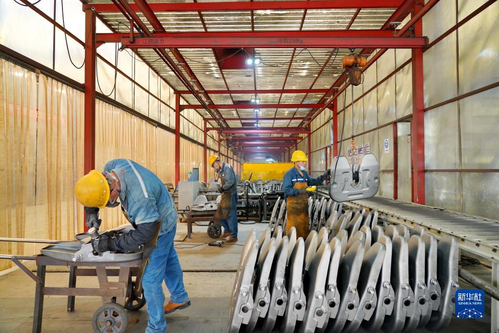 4月13日,工人在唐山龍泉機械有限公司車間內加工產品。