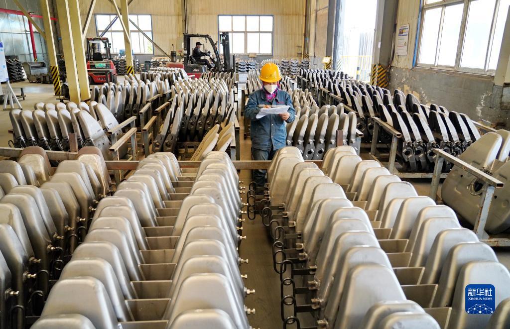 4月13日,工人在唐山龍泉機械有限公司車間內核對產品信息。