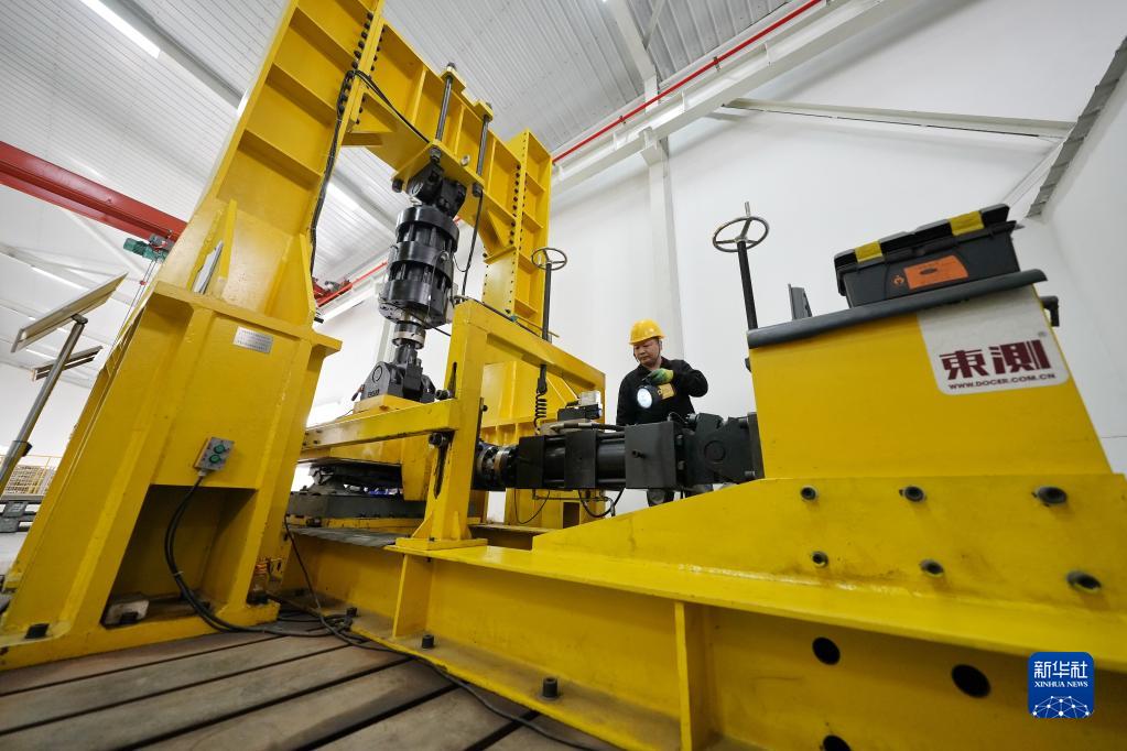4月13日,工人在唐山龍泉機械有限公司企業實驗室內檢查設備運行情況。