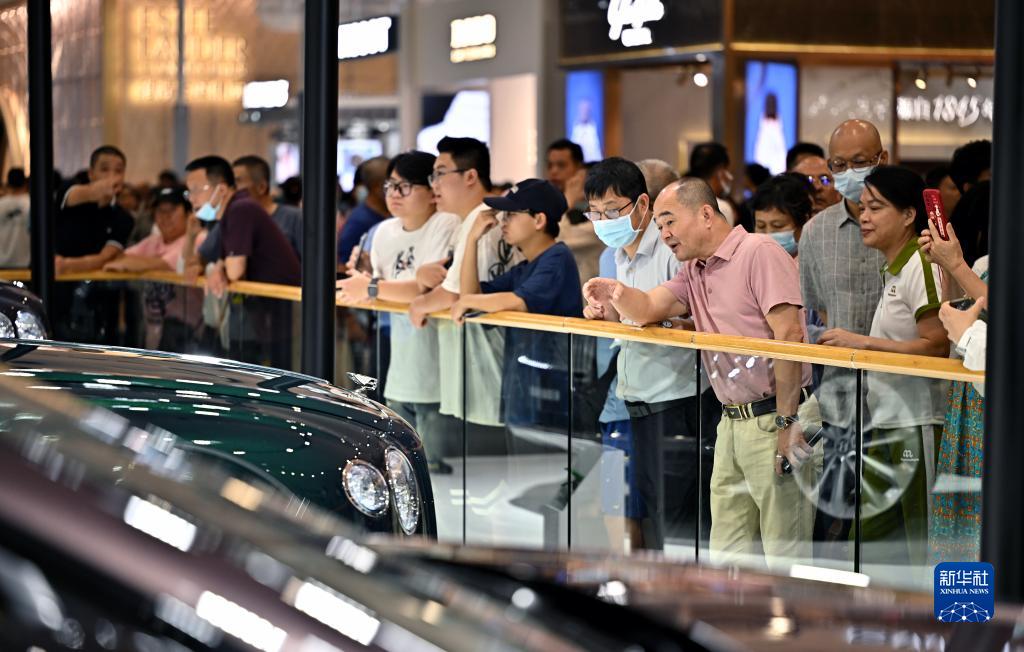 4月14日,觀眾在消博會賓利展臺觀看展車。