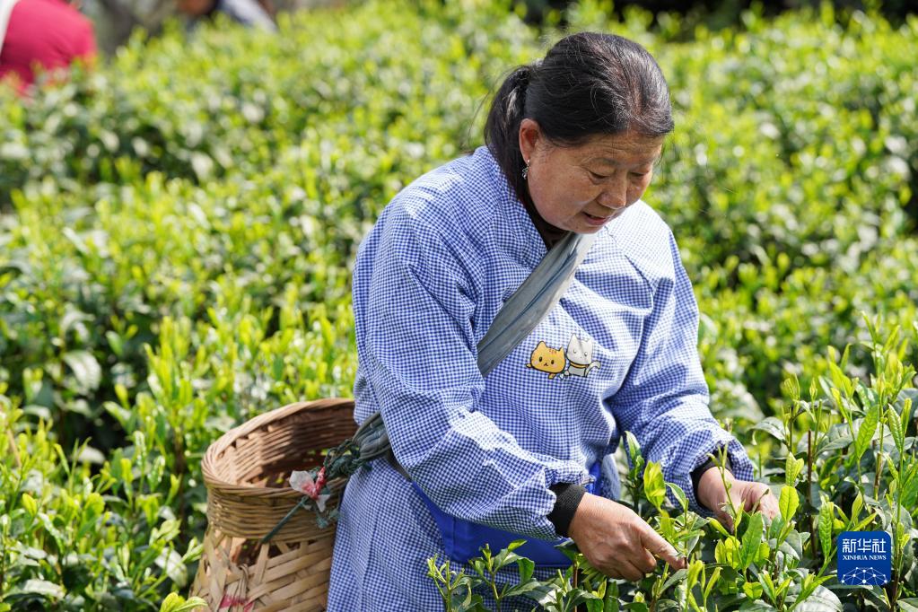 4月14日,在安徽省黃山市黃山區新明鄉猴坑村,茶農采摘太平猴魁鮮葉。