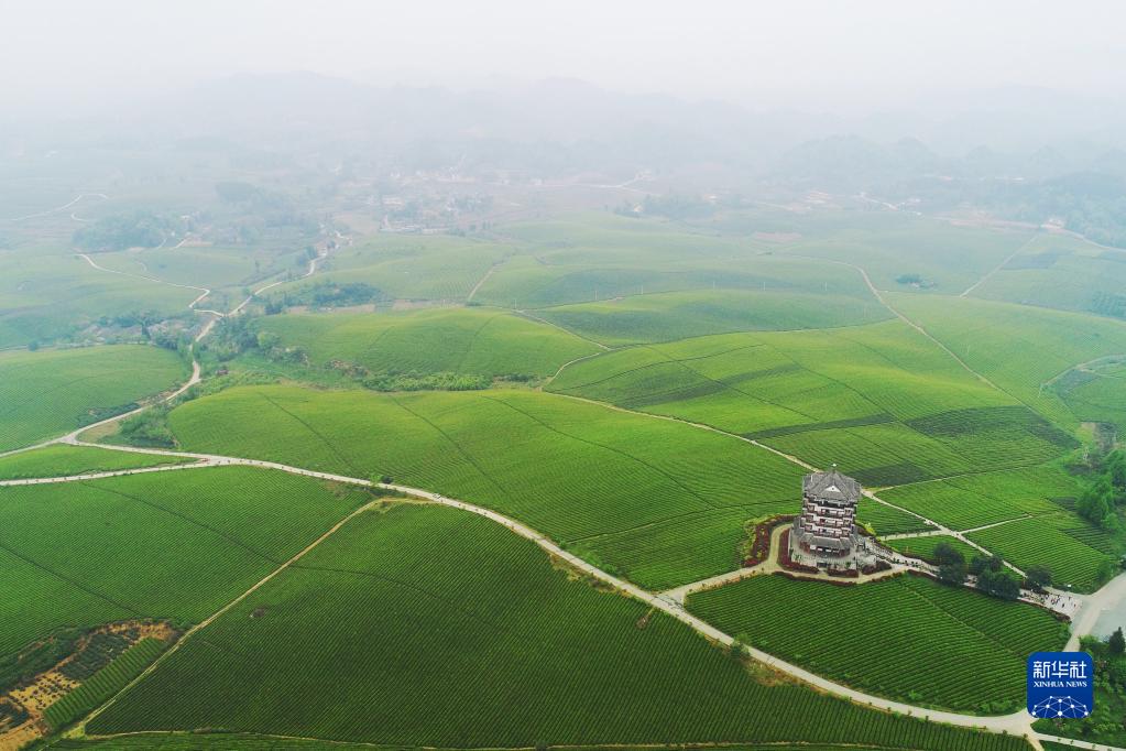 這是貴州省湄潭縣的“萬畝茶?!憋L光(無人機照片,2021年4月12日攝)。