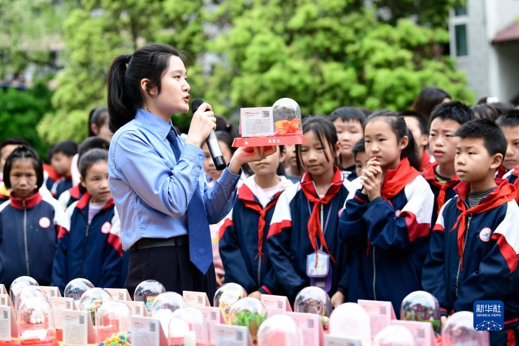 4月14日,檢察干警在貴州省黔東南苗族侗族自治州黃平縣舊州鎮中心小學為學生講解預防毒品知識。