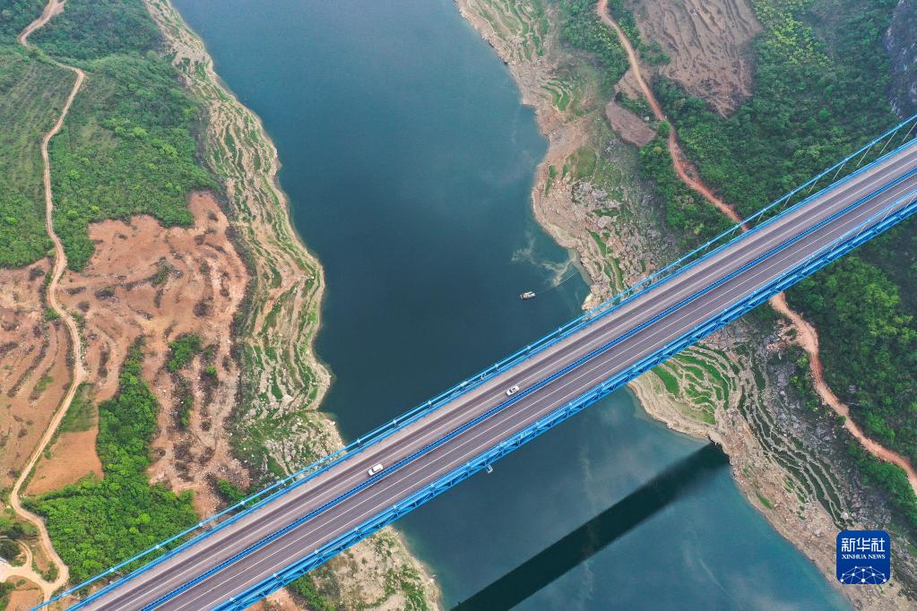 4月13日拍攝的貴州甕開高速開州湖大橋(無人機照片)。