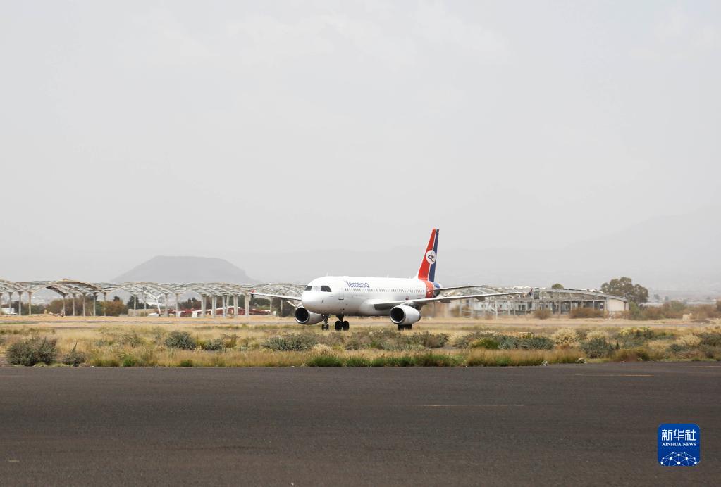4月14日,搭載獲釋胡塞武裝成員戰俘的飛機抵達也門薩那機場。
