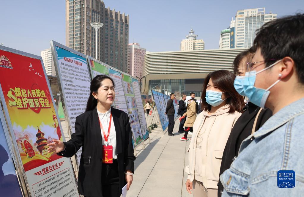 4月15日,在甘肅省蘭州市舉行的全民國家安全教育日宣傳活動現場,工作人員為市民講解國家安全知識。