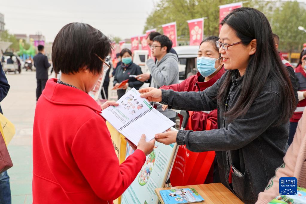 4月15日,在河北省石家莊晉州市新世紀廣場,工作人員為市民講解國家安全知識。