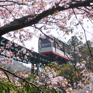 這是4月12日在江西省九江市廬山風景區三疊泉拍攝的纜車。