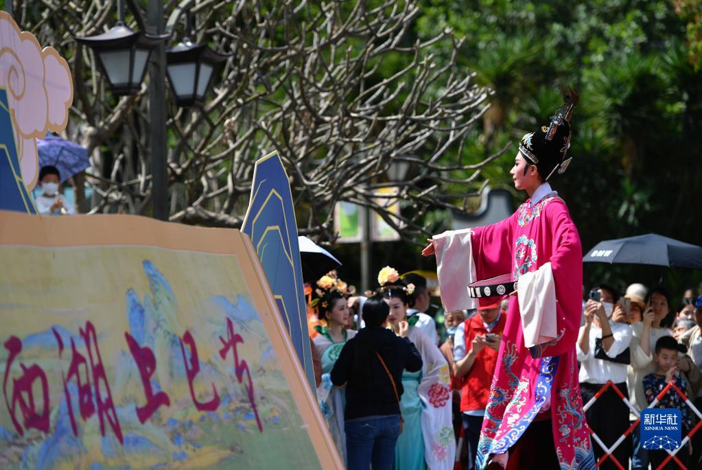 4月15日,在福州西湖上巳節啟動儀式現場,福建閩劇院的演員在表演閩劇片段。